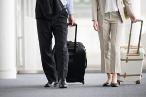 帰宅日、調査員2名で国内線出口で待機し、1名は送迎場所に車を停めて待機する。